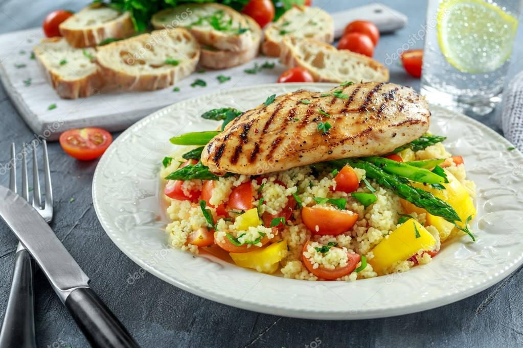 Lemony light and fluffy couscous is yet another favorite quick option in my family for weeknight dinner! Remove asparagus and add =chicken broth. Your couscous asparagus stock images are ready. Pounding the chicken thin helps it cook quickly alongside the carrots and potatoes. To serve put the couscous on a plate and slice the chicken in thick slices and put them on top.