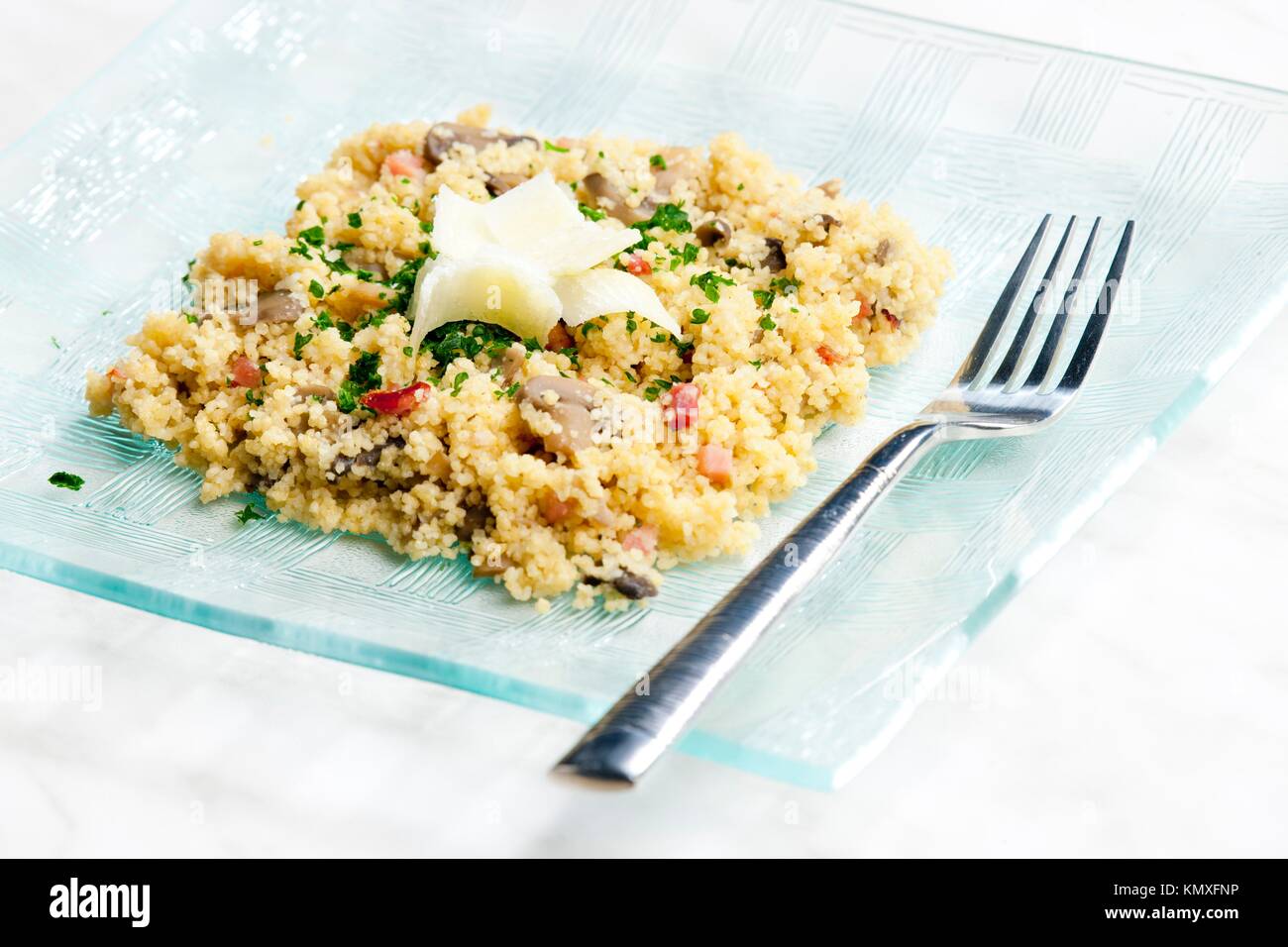Pearl Couscous Risotto With Morels And Roasted California P from photos.bigoven.com The larger israeli couscous gives this recipe a similar texture to risotto made with arborio rice but with a reduced cooking time. Slice larger morel mushrooms in halves or quarters but leave smaller mushrooms whole. Sprinkle the mushrooms with salt and keep cooking until the mushrooms are tender and browned, about 5 minutes. I would like to share my experience with you. Cook for about 10 seconds. When hot, put in the shallot and garlic. Add asparagus to the pan and saute a few minutes Large eggs, mushrooms, baby arugula, olive oil cooking spray and 8 more.